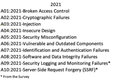 Le classement ‘OWASP Top 10‘ actuellement en vigueur, l’ ‘OWASP Top 10 2021‘, donne le classement suivant: